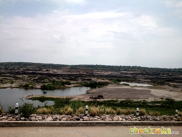 เราออกเดินทางกันเวลาประมาณ 8.00 น. เป็นการขี่ยาวเพื่อให้ถึงที่หมายเร็วที่สุด มีแวะแค่เติมน้ำมันระหว่างทาง ผู้เขียนพร้อมเพื่อนสื่อมวลชนอีก 3 คัน มาถึงสามพันโบกเวลาประมาณ 10.20 น. จากนั้นก็พากันขี่ Aerox 155 ลงไปลุยพื้นที่ด้านล่างซึ่งเต็มไปด้วยโบกหรือหลุมที่เกิดจากหินเต็มไปหมด ซึ่งเป็นจุดท่องเที่ยวสำคัญ แม้มีโขดหินมากมาย แต่ก็มีทางให้รถวิ่งได้ ปกติก็มีรถกระบะวิ่งขึ้น-ลงรับส่งนักท่องเที่ยวอยู่แล้ว ลักษณะของพื้นที่ด้านล่างเป็นหินส่วนมาก มีทรายปะปนหลายส่วน iรวมไปถึงแอ่งน้ำด้วย เพราะนับเป็นพื้นที่ส่วนหนึ่งของแม่น้ำโขง การขี่มอเตอร์ไซด์สปอร์ตออโตเมติกอย่าง Aerox 155 ลงไปดูไม่น่าเป็นไปได้ แต่ด้วยสมรรถนะเครื่องยนต์ Blue core 155 ซีซี และระบบวาล์วแปรผัน VVA ทำให้ตัวรถมีกำลังเพียงต่อการขี่โลดแล่นด้านล่าง แม้เจอแอ่งทรายก็ยังผ่านไปได้ทุกครั้ง ถ้าได้ยางแบบดูอัลสปอร์ตคงสนุกได้มากขึ้น