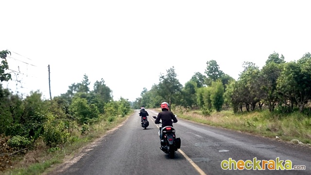 เมื่ออิ่มหนำกันทั่วหน้า หนังท้องตึง หนังตาเริ่มหย่อน แต่เรายังเหลือการเดินทางอีก 100 กว่ากิโลเมตร เพื่อกลับไปยังตัวเมือง สำหรับการขี่มอเตอร์ไซด์ทางตรงโล่งๆ ในช่วงบ่ายหลังอิ่มจากอาหารกลางวัน นับเป็นความทรมานอีกรูปแบบหนึ่ง เพราะจะง่วงมาก และอากาศก็ร้อนด้วย โชคดีที่ผู้เขียนใช้แจ็คเก็ต ALPINESTARS Bonneville Air ที่สามารถระบายอากาศได้ดีเพื่อระบายความร้อนเพื่อชาวเอเชียโดยเฉพาะ และมีน้ำหนักเบา พร้อมมีจุดกันกระแทก การ์ดรองรับช่วงหัวไหล่ ศอก และสามารถใส่การ์ดด้านหลังได้ สำหรับผู้เขียนใช้การ์ดรุ่น NUCLEON KR-2I BACK ที่ได้รับการออกแบบให้เข้ากับสรีระและระบายอากาศได้ดีระหว่างขี่ด้วย ทั้งเสื้อและการ์ดเป็นรุ่นประหยัดเพียงพอและเหมาะสมในการใช้งานกับสภาพอากาศร้อนแบบนี้จริงๆ