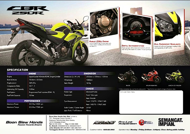 Honda CBR250RR ใหม่ อาจเป็นรุ่นที่ไบค์เกอร์ในมาเลเซียรอคอยกันช่วงนี้ แต่ล่าสุดกลับเป็น Honda CBR250R ที่ประกาศราคาและรายละเอียดออกมาก่อน โดยมีค่าตัวเริ่มต้น ตีเป็นเงินไทยประมาณ 175,000 บาท