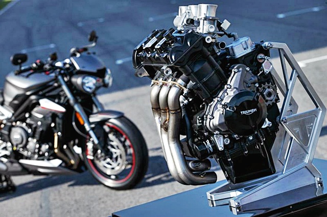 เครื่องยนต์ Triumph แบบสามสูบ ขนาด 765 ซีซี พัฒนามาจากเครื่องยนต์ที่ติดตั้งอยู่ในไทรอัมพ์ สตรีท ทริปเปิล อาร์เอส (Street Triple RS) ในปี 2017 โดยเป็นการปรับเพิ่มคุณสมบัติของเครื่องใหม่ในด้านพละกำลังและแรงบิด สำหรับการขับขี่บนท้องถนน เครื่องยนต์ 765 ซีซีใหม่นี้ส่งมอบสมรรถนะที่ดีที่สุดสำหรับรถมอเตอร์ไซค์ สตรีท ทริปเปิล อาร์เอส การปรับเปลี่ยนที่ถูกถูกรังสรรค์ขึ้นมาโดยเฉพาะเพื่อให้เข้ากับเครื่องยนต์ที่จะทำไปใช้ในการแข่งขันซึ่งรวมไปถึงการปรับแต่งดังต่อไปนี้