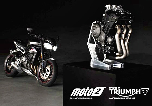 ไทรอัมพ์ มอเตอร์ไซเคิลส์ ลงนามในสัญญากับ ดอร์น่า (Dorna) ผู้ถือลิขสิทธิ์จัดแข่งขันรถมอเตอร์ไซค์ทางเรียบชิงแชมป์โลก MotoGPTM เป็นระยะเวลา 3 ปี ในการเป็นผู้ผลิตเครื่องยนต์ไทรอัมพ์ขนาด 765 ซีซี ซึ่งเป็นเครื่องยนต์แบบเดียวกันที่ติดตั้งอยู่บนรถมอเตอร์ไซค์ไทรอัมพ์ สตรีท ทริปเปิล อาร์เอส (Street Triple RS) รุ่นล่าสุด ทั้งนี้เครื่องยนต์ดังกล่าวได้รับการพัฒนาที่สำคัญในหลายจุดและเปลี่ยนก้าวสำคัญที่ยิ่งใหญ่นี้ให้เต็มเปี่ยมไปด้วยพละกำลังและแรงบิด