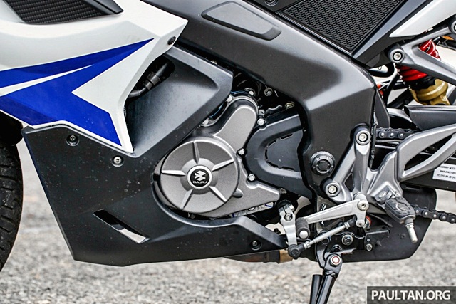 ทั้ง 2 โมเดลใช้เครื่องยนต์ 1 สูบ 3 หัวเทียน! ความจุ 200 ซีซี ระบายความร้อนด้วยน้ำ จ่ายน้ำมันด้วยหัวฉีด กำลังสูงสุด 24.5 PS ที่ 9,750 รอบต่อนาที และแรงบิด 18.6 นิวตันเมตร ที่ 8,000 รอบต่อนาทีระบบเบรกจานหน้าขนาด 300 มิลลิเมตร จานหลัง 280 มิลลิเมตร และคาลิปเปอร์จาก BYBRE ลูกหม้อของ Brembo พร้อม ABS เฉพาะรุ่น RS200Modenas Pulsar RS200