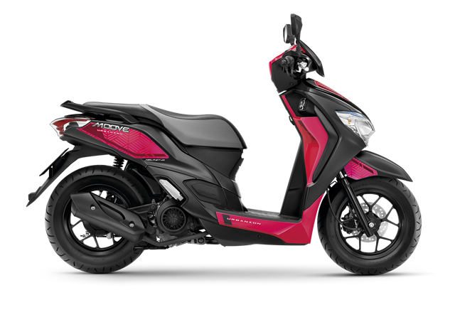 Honda Moove โฉมใหม่ มีให้เลือก 3 สี ได้แก่ ดำ-เทา (สีใหม่), ดำ-น้ำเงิน และดำ-ชมพู ราคาแนะนำอยู่ที่ 50,000 บาท
