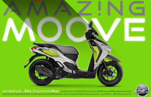 Honda Moove โฉมใหม่ เติมความเป็นที่สุดของสมาร์ท เอ.ที.แห่งยุค ด้วยแนวคิดใหม่ "AMAZING Moove สมาร์ทไบค์...ที่มีอะไรมากกว่าที่คิด" ตอกย้ำความเอนกประสงค์ที่มีมากมายเกินกว่าที่ตาเห็น และเป็นตัวเลือกที่คนรุ่นใหม่ให้ความสนใจ จากองค์ประกอบของรูปร่างหน้าตาสีสันใหม่ ไฟหน้าโดดเด่นแบบ LED และไฟท้ายแบบ 3 มิติ ล้อแม็กดำด้านขนาด 12 นิ้ว