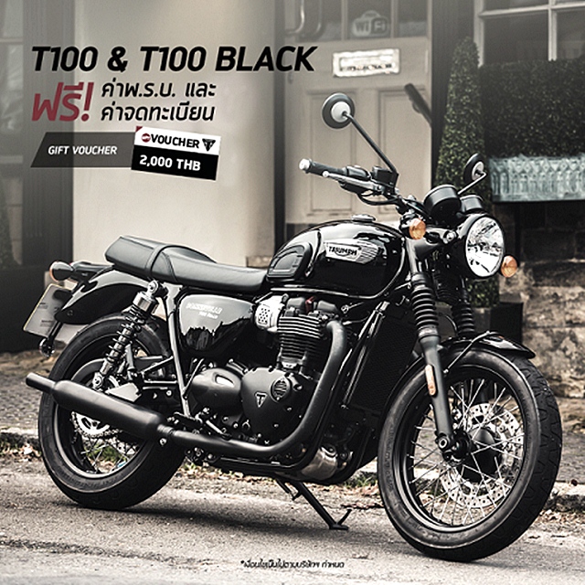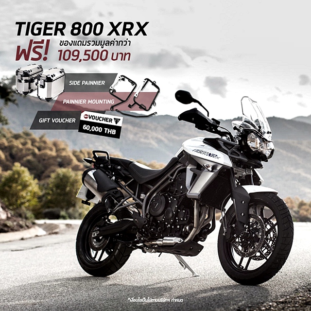 ไทรอัมพ์ มอเตอร์ไซเคิลส์ ส่งโปรโมชั่นแรงต่อเนื่องเอาใจสาวก เริ่มต้นที่ตระกูลคลาสสิก เช่น บอนเนวิลล์ บอบเบอร์ สตรีท สแครมเบลอร์ บอนเนวิลล์ ที100 บอนเนวิลล์ ที100 แบล็ค รับดอกเบี้ยพิเศษ ดาวน์ต่ำ ผ่อนนานสูงสุด 60 เดือน และ Gift Voucher มูลค่า 2,000 บาท ตลอดจนฟรี ค่าพ.ร.บ. ค่าจดทะเบียน ส่วนรุ่น บอนเนวิลล์ ที120 บอนเนวิลล์ ที120 แบล็ค ทรักซ์ตัน อาร์ และสตรีท ทวิน รับดอกเบี้ยพิเศษ ดาวน์ต่ำ พร้อมผ่อนนานสูงสุดถึง 60 เดือน ตามมาด้วย รุ่น สตรีท ทริปเปิล อาร์เอส รับดอกเบี้ยพิเศษ ดาวน์ต่ำ ผ่อนนาน 60 เดือน ฟรี ค่าพ.ร.บ. ค่าจดทะเบียน และ Gift Voucher มูลค่า 5,000 บาท และปิดท้ายสายลุย อย่างรุ่น ไทเกอร์ 800 เอ็กซ์อาร์เอ็กซ์ รับข้อเสนอดอกเบี้ยสุดพิเศษ ดาวน์ต่ำ ผ่อนนานสูงสุด 60 เดือน พร้อมฟรี Gift Voucher มูลค่า 60,000 บาท ตลอดจนอุปกรณ์เสริม Pannier Mounting และ Silver Aluminum Side Panniers มูลค่ารวมมากสุดเท่าที่เคยมีกว่า 109,500 บาท