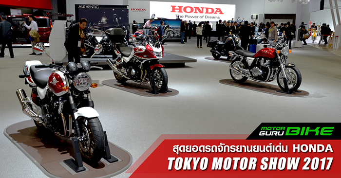 Tokyo Motor Show นั้น ย่อมจะมีผู้ผลิตรถยนต์และรถจักรยานยนต์เข้าร่วมเป็นจำนวนมาก ซึ่งต่างต้องนำเอารถต้นแบบ และรถประเภทโปรดักชั่นที่จะจัดจำหน่ายทั้งในประเทศญี่ปุ่นเอง รวมถึงจัดจำหน่ายนอกประเทศญี่ปุ่นมาจัดแสดงให้ได้ชมกันอย่างใกล้ชิด หนึ่งในนั้นคือแบรนด์เจ้าตลาดอย่าง Honda ที่ได้นำรถยนต์และรถจักรยานยนต์รุ่นต่างๆ มาจัดแสดงเอาไว้มากมาย โดยแบ่งออกเป็นประเภทต่างๆ สำหรับรถจักรยานยนต์ ก็จะมี รถจักรยานยนต์ Concept Model, Plan Production Models, Production Models, Custom Concept Model, Racing Models และ Heritage Model ซึ่งแต่ละหมวดก็มีรถจักรยานยนต์ที่เป็นดาวเด่นจัดแสดงอยู่ เราไปดูกันดีกว่าว่าจะมีอะไรกันบ้าง