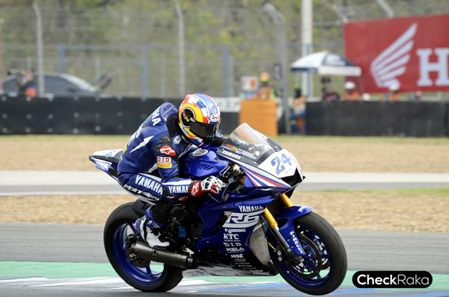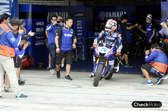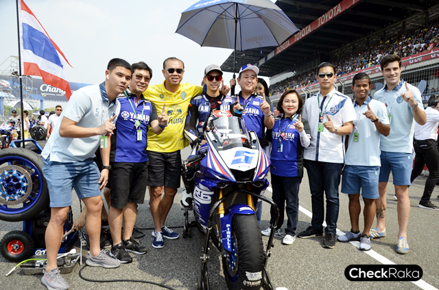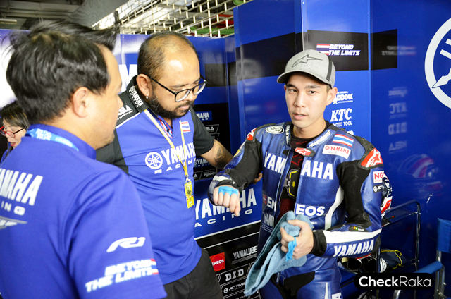 ทีมงาน Yamaha Thailand Racing Team กำลังลุ้นเวลาของ โฟลท-รัฐพงษ์ เข้าสู่วันอาทิตย์ซึ่งเป็นวันแข่งขัน โฟลท-รัฐพงษ์ และ ตั้น-เดชา 2 นักบิดจาก Yamaha Thailand Racing Team สวมหัวใจนักสู้ขับเคี่ยวกับนักบิดระดับ World Class ในรุ่น World Supersport ได้อย่างสุดมันส์ต่อหน้ากองเชียร์ชาวไทยในสนามโฮมเรซ โดย โฟลท-รัฐพงษ์ ออกสตาร์ทในอันดับที่ 7 เพียงแค่รอบที่ 2 ก็สามารถไล่แซง Hikari Okubo นักแข่งชาวญี่ปุ่น ไปอยู่ในอันดับ 6 จนถึงการแข่งขันในรอบที่ 11 ก่อนจะพลาดเสียตำแหน่งและจบการแข่งขันในอันดับที่ 8