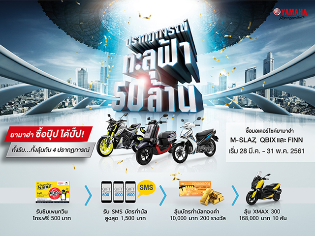 ลุ้นรางวัลใหญ่ ยามาฮ่า XMAX300 มูลค่า 168,000 บาท ทุกเดือน รวม 10 คัน