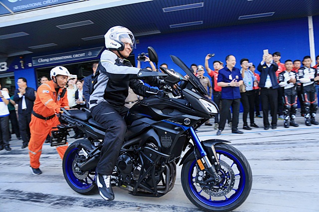 ในการเยี่ยมชมครั้งนี้ ยามาฮ่าได้จัดบิ๊กไบค์ Yamaha FJ-09 สำหรับให้นายกฯ ได้ลองขับขี่บนสนามช้างที่ใช้ในการแข่งขันโมโตจีพี เพื่อให้สัมผัสถึงความพร้อมของระดับมาตรฐานที่จะช่วยให้การแข่งขันเป็นไปด้วยความเรียบร้อยสมบูรณ์แบบมากที่สุด