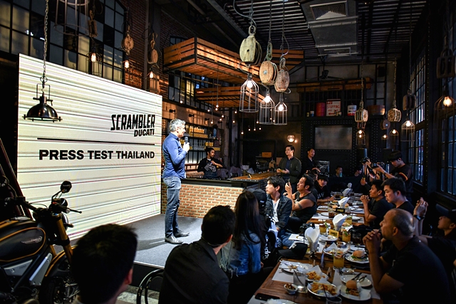 การทดลองขี่เป็นรูปแบบ Night Ride โดยนัดกันที่ร้าน Sheep Shank Public House บนถนนพระอาทิตย์ มีรถดูคาติ สแครมเบลอร์ ทั้งหมด 12 คัน ซึ่งมีทั้งรุ่น 1100, 1100 special และ 1100 sport โดยให้สื่อมวลชนจับฉลากเลือกเบอร์รถว่าได้รุ่นไหน ทางทีมงานได้รุ่น