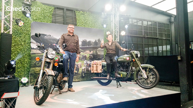 สำหรับรอยัลเอนฟิลด์ คลาสสิก 500 เพกาซัส (Royal Enfield Classic 500 Pegasus) ออกแบบให้มี 2 เฉดสี คือสีน้ำตาลเซอร์วิส บราวน์ (Service Brown) และสีเขียวโอลีฟ แดรบ (Olive Drab Green) ซึ่งคนไทยเพียง 90 คนเท่านั้น จาก 1,000 คัน ทั่วโลก จะได้เป็นเจ้าของ มอเตอร์ไซค์ประวัติศาสตร์คันนี้ ในราคา 199,000 บาท โดยเปิดจองผ่านช่องทางออนไลน์ตั้งแต่ 18 กรกฎาคมไปจนถึง 31 กรกฏาคม นี้เท่านั้น ซึ่งลูกค้าที่จองผ่านช่องทางออนไลน์ จะมีสิทธิได้รถก่อน