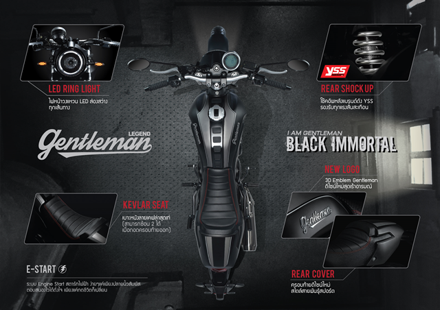 GPX Legend Gentleman 200 (จีพีเอ็กซ์ เลเจนด์ เจนเทิลแมน 200) โฉมใหม่ ปี 2019 ในคอนเซปต์ "Black Immortal" เผยภาพลักษณ์ใหม่ในแบบฉบับดุดัน ตามสไตล์สายดาร์กมาดเข้ม ซึ่งถือเป็นการปรับโฉมครั้งแรกตั้งแต่ถือกำเนิดรุ่นนี้มาเป็นระยะเวลากว่า 2 ปีแล้ว