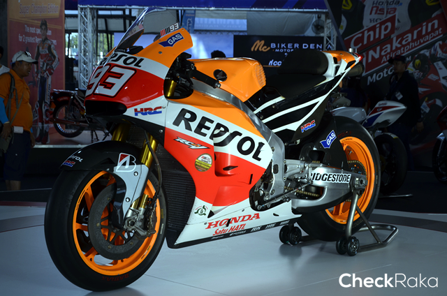 Honda RC213V รุ่นปี 2014 หมายเลข 93 รถแข่งคู่กายของแชมป์โลกอายุน้อยที่สุดในโลก มาร์ก มาร์เกวซ เจ้าของฉายา "เด็กระเบิด" โดยรถแข่งขันนี้ได้สร้างความภาคภูมิใจให้กับเขาและ Honda ด้วยการคว้าตำแหน่งแชมป์โลก MotoGP ได้ 2 ปีติดต่อกันและยังสร้างสถิติแชมป์ MotoGP ได้ถึง 13 สนามในฤดูกาลเดียว