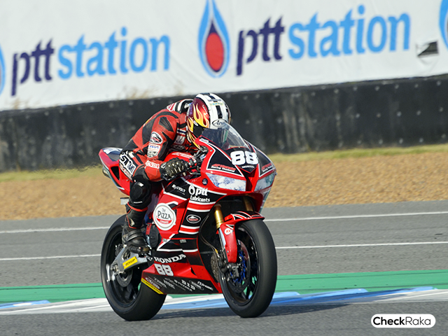 สิ้นสัญญาณไฟ "นิว" ออกตัวจากจุดตำแหน่งโพลโพซิชั่น โดยตลอดการแข่งขันพยายามรักษาตำแหน่งท็อป 5 แบบสุดความสามารถ กระทั่งเมื่อถึงโค้งตัดสินในรอบสุดท้าย "นิว" เข้าเส้นชัยอันดับ 3 ตามหลังแชมป์ประจำเรซอย่าง อาห์วิน ซานจาย่า นักบิดชาวอินโดนีเซีย เพียง 0.151 วินาที ขณะที่อีกหนึ่งนักบิดของ A.P. Honda Racing Thailand "ฟิล์ม" ปิยวัฒน์ เข้าอันดับ 11 แต่ก็ต้องเสียใจ และเสียดายกับ Honda อีกครั้ง เมื่อภายหลังกรรมการมีคำตัดสินลงโทษจากการผิดกติกาการแข่งขันนักแข่งหลายๆ คน โดยหนึ่งในนั้นก็คือ "นิว" ทำให้ท้ายที่สุดแล้วตกลงไปอยู่อันดับที่ 8 ด้าน "ฟิล์ม" ขยับขึ้นมาเป็นที่ 9