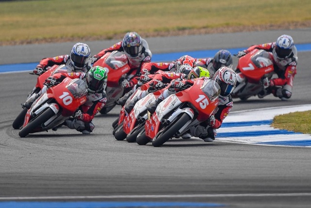 การแข่งขันรถจักรยานยนต์ทางเรียบ เอเชีย ทาเลนต์ สนามโฮมเรซ เรส 1 ปิดฉากที่บุรีรัมย์ "ก๊องส์" ธัชกร บัวศรี มีลุ้นจนโค้งสุดท้าย ก่อนเข้าป้ายอันดับ 4 ตามด้วย "บิว" วริทธิ์ ทองนพคุณ ในอันดับ 6 และ "ฟิล์ม" ปิยวัฒน์ ประทุมยศ อันดับที่ 9 พาเหรดคว้าแต้มต่อหน้าแฟนๆ ความเร็วชาวไทยเมื่อบ่ายวันเสาร์ที่ผ่านมา ที่สนามช้าง อินเตอร์เนชั่นแนล เซอร์กิต จ.บุรีรัมย์