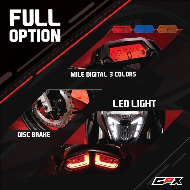 RAZER 220 อัดแน่นฟีเจอร์ต่างๆ มาให้แบบ Full Option จัดระบบดิสก์เบรกมาให้ทั้งหน้าและหลัง เพื่อให้มีสมรรถนะการเบรกสูง มั่นใจได้ทุกการเบรก มาพร้อมกับหน้าจอเรือนไมล์แบบดิจิตอล บอกข้อมูลการขับขี่ต่างๆ ครบครัน เช่น ความเร็ว, ระดับน้ำมัน, การเซ็ตทริป เป็นต้น แถมยังเพิ่มลูกเล่นสุดคูลมาให้ ด้วยการปรับเปลี่ยนสีหน้าจอได้ถึง 3 สี ได้แก่ สีแดง, สีน้ำเงิน และสีส้ม นอกจากนี้ ยังให้ช่องเสียบ USB สำหรับชาร์จมือถือมาตรงบริเวณใต้เรือนไมล์ เพื่อความสะดวกสบาย เหมาะกับไลฟ์สไตล์ของไบค์เกอร์ในยุคนี้สุดๆ