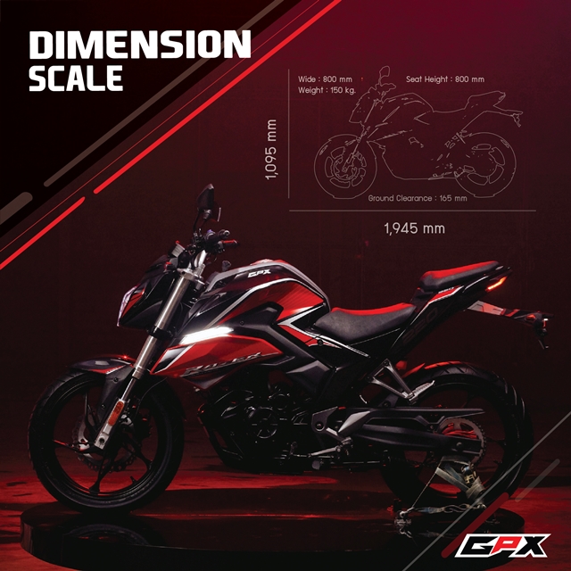 คราวนี้ มาดูทวดทรง สรีระของเจ้า RAZER 220 กันสักหน่อย ความกว้าง x ยาว x สูง : 800 x 1,945 x 1,095 mm. ความสูงจากพื้นถึงเบาะ : 800 mm. ระยะห่างจากพื้นถึงเครื่อง : 165 mm. น้ำหนัก :150 kg. ส่วนใครที่ไม่แน่ใจว่าจะนั่งถนัดมั๊ย แนะนำให้ไปลองคร่อมตัวจริงที่ร้านตัวแทนจำหน่ายดูก่อนได้เลย