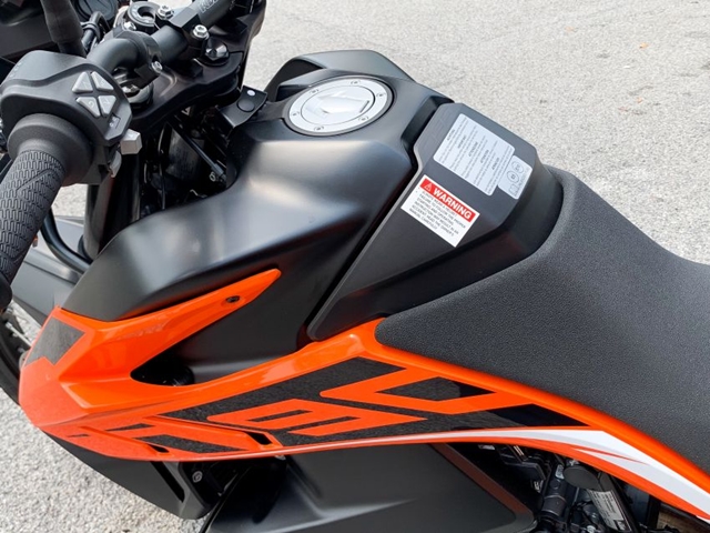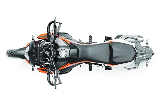 รูปลักษณ์จุดเด่นที่ได้ต้นแบบจาก 1290 Duke ก็เห็นจะเป็นไฟหน้าคู่แบบ LED ตาตั๊กแตน และหน้าจอแสดงผล 5 นิ้ว แบบ TFT ระบบสีแบบเต็มรูปแบบ พร้อมบอกข้อมูลค่าต่างๆ ทั้งมาตรความเร็ว ถังน้ำมัน ปรับโหมดการขับขี่ และการตั้งค่าระบบ ABS มาพร้อมชิลล์หน้าที่สามารถปรับขึ้นลงได้ เบาะนั่ง 2 ตอนเป็นชิ้นเดียว.jpg)