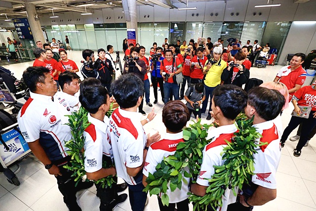 มร.ชิเกโตะ คิมุระ ประธานกรรมการบริหาร บริษัท เอ.พี. ฮอนด้า จำกัด เดินทางมาต้อนรับและร่วมแสดงความยินดีกับทีมแข่ง เอ.พี.ฮอนด้า เรซซิ่ง ไทยแลนด์ ทีมแข่งสายเลือดไทย 100% ที่นำโดย "มุกข์" มุกข์ลดา สารพืช ยอดนักบิดสาวแกร่งชาวไทย ทำสถิติเป็นนักบิดหญิงคนแรกในประวัติศาสตร์ ในรอบ 42 ปี ,"ฟิล์ม" ปิยวัฒน์ ประทุมยศ และ "บิว" วริทธิ์ ทองนพคุณ หลังสามารถคว้าแชมป์บิดทรหด ในศึก "ซูซูกะ เอ็นดูรานซ์ 2019" ได้อย่างยิ่งใหญ่ ณ ท่าอากาศยานสุวรรณภูมิ