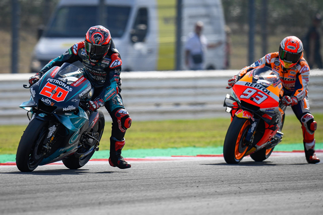 Marquez แซง Quartararo บริเวณทางตรง และป้องกันไม่ให้ Quartararo มีโอกาสแซงคืนได้ ในช่วงท้าย Quartararo พยายามจะแซงจนเกือบจะสัมผัสกับล้อหลังของ Marquez จนต้องเสียจังหวะ ปล่อยให้ Marquez เป็นผู้ชนะไปในที่สุด หลังเกมการแข่งขัน Quartararo คงต้องรู้สึกผิดหวังอย่างมากทั้งที่เป็นผู้นำมาเกือบตลอดทั้งเกม แต่สุดท้ายต้องพลาดคว้าแชมป์แรกใน MotoGP ไป