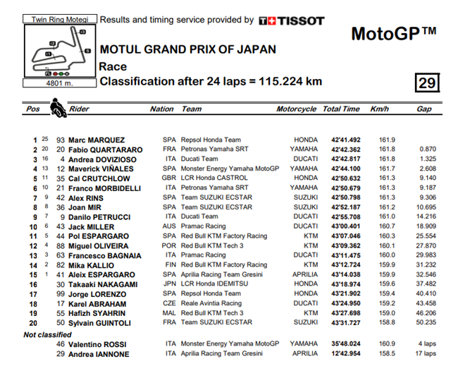 โมโตจีพี.คอม ผลการแข่งขัน MotoGP รายการ Motul Grand Prix of Japan ที่สนาม Twin Ring Motegi