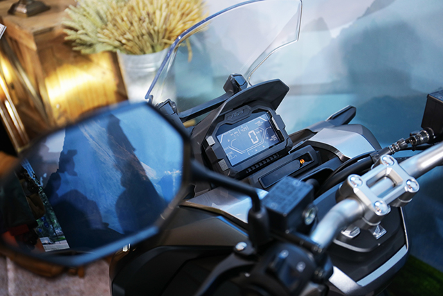 พร้อมระบบ ESS (Emergency Stop Signal) ไฟสัญญาณกะพริบอัตโนมัติ เรือนไมล์ Full LCD ถอดแบบความพรีเมียมจากรถบิ๊กไบค์ แยกส่วนข้อมูลจำเป็นที่ระบุได้ถึงวันที่และอุณหภูมิ และส่วนแจ้งเตือนออกจากกันเพื่อการมองเห็นที่ชัดเจน แฮนด์แบบแทปเปอร์บาร์ให้ความมั่นคงแข็งแรงตามสไตล์แอดเวนเจอร์ กระจกบังลมหน้าปรับได้สองระดับ ช่วยลดแรงปะทะของลม เบาะนั่งสูง 795 มม. ให้ทัศนวิสัยที่ชัดเจนกว่าแต่นั่งสบาย พร้อมที่เก็บสัมภาระใต้เบาะขนาด 28 ลิตร สามารถใส่หมวกกันน็อกแบบเต็มใบหรือสัมภาระได้อย่างเต็มที่