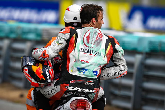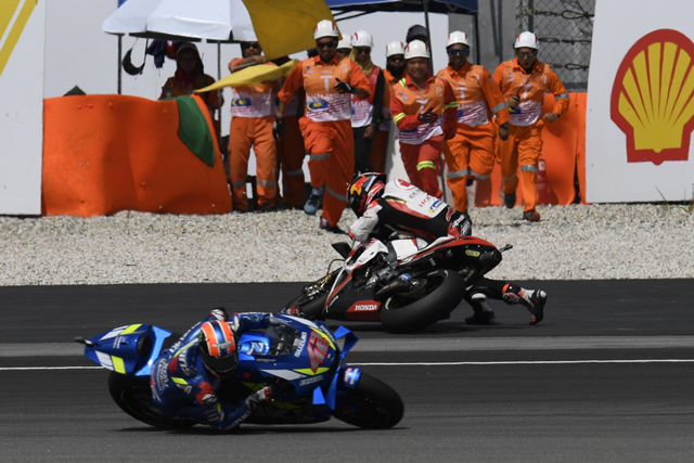 ส่วน Johann Zarco เหมือนจะไปได้ดีกับรถ Honda แต่สนามนี้กลับเกิดอุบัติเหตุต้องออกจากการแข่งขัน เพราะไปปะทะกับ Joan Mir ทีม Suzuki Ecstar