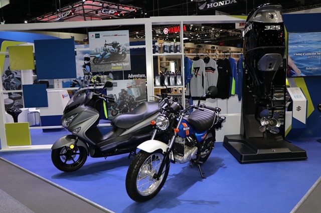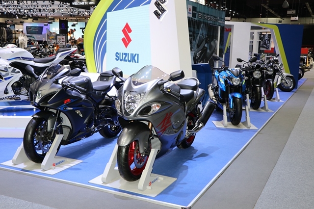 โดยในบูธ ซูซูกิ ได้จัดแสดงรถจักรยานยนต์ซูซูกิ ไม่ว่าจะเป็นรถซูเปอร์ไบค์ระดับเวิลด์คลาส อย่าง Suzuki KATANA, Suzuki GSX1300R Hayabusa, Suzuki GSX-R1000R และ Suzuki GSX-R1000 ต่อมาที่รถจักรยานยนต์สไตล์สตรีทสปอร์ต Suzuki GSX-S1000, Suzuki GSX-S1000F, Suzuki GSX-S750, Suzuki SV650X และ Suzuki SV650