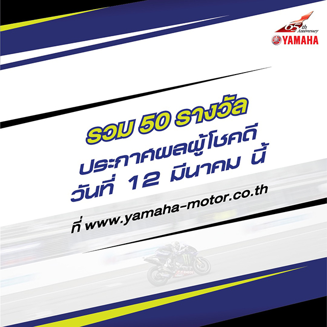 - ร่วมกิจกรรม Meet & Greet กับนักแข่ง MotoGP สังกัดทีมยามาฮ่า รางวัลละ 2 ที่นั่ง ในวันที่ 18 มีนาคม 2563 ณ The Street รัชดาภิเษก
