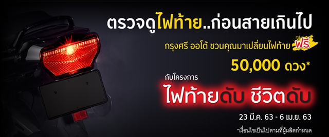 19 มี.ค. 63 757GPX ร่วมกับกรุงศรี ออโต้ ลุยแคมเปญเปลี่ยนไฟท้ายมอเตอร์ไซค์ฟรี 50,000 ดวง!