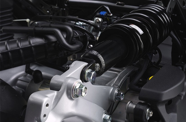 ความแตกต่างอีกอย่างที่นับว่าไม่เหมือนใครคือ โช๊คอัพหลังแบบเดี่ยว monoshock วางแนวนอน ใขณะที่ XMAX เป็นโช๊คอัพคู่ ทำให้ Majesty ขับขี่นุ่มนวลสบายมากขึ้น แต่ว่ายังมีจุดด้อยกว่า NMAX คืน ใน Majesty ยังไม่มีระบบเบรก ABS มาให้ แต่ดิสก์เบรกล้อหน้านั้นมีขนาด 267 มม. ใหญ่กว่า NMAX ที่มีขนาด 230 มม.