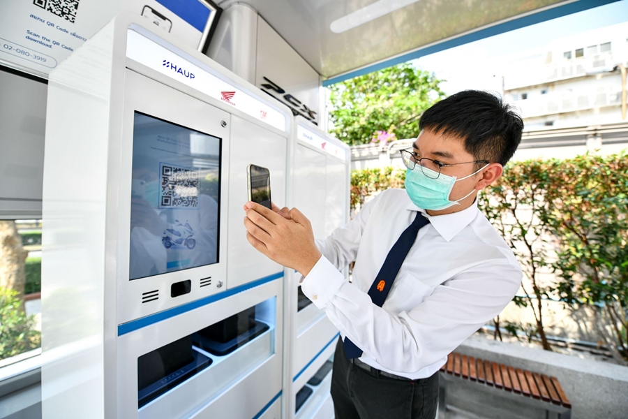 3. แอปพลิเคชันฮ้อป (HAUP) เปิดโอกาสให้ผู้ใช้เข้ามาขับขี่ได้โดยใช้เพียงสมาร์ทโฟนส่วนตัวในการจองรถ ปลดล็อกรถ รวมถึงการสับเปลี่ยนแบตเตอรี่