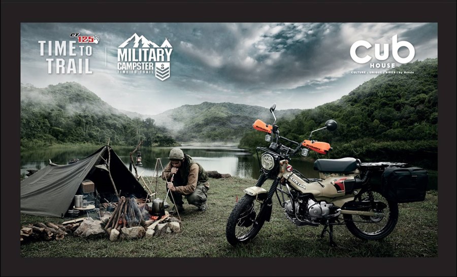 CT125 Military Campster โดดเด่นด้วยชุดแต่ง Kitaco ที่มาในสไตล์ Military กับลายพราง ให้สัมผัสได้ถึงความเป็นหนึ่งเดียวกับธรรมชาติ มาพร้อมกระเป๋า Givi และ Guard ที่ดีไซน์มาให้ผู้ขับขี่สามารถออกไปลุยได้ไกลกว่าที่เคย รวมชุดแต่งทั้งสิ้นกว่า 12 ไอเท็ม ราคาแนะนำ 104,900 บาท