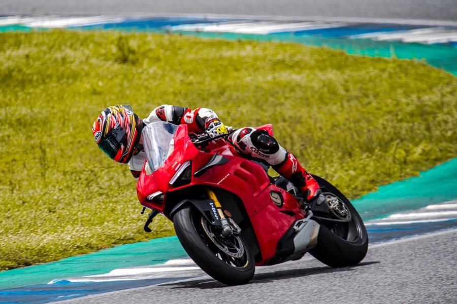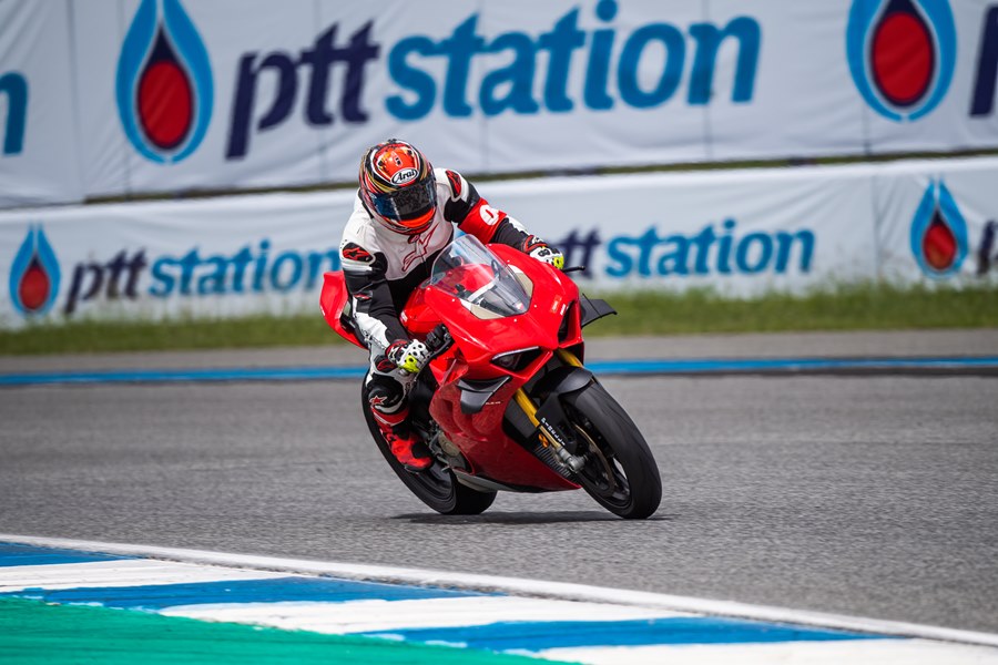 หลังจากพักรอให้เซสชั่นกลุ่มสีเขียวและแดงผ่านไปก็ได้เวลาออกไปสัมผัสพระเอกของงาน Panigale V4S (1,249,000 บาท) ด้วยขุมพลเดียวกันกับ Streetfighter V4S แต่มีแรงม้าสูงสุด 214 ตัว ที่ 13,000 รอบต่อนาที และเป็นสปอร์ตบิ๊กไบค์ที่ดูเสมือนตัวแข่ง WSBK ทำให้รู้สึกดีเหมือนกำลังขี่รถแข่งอยู่ในรายการ ผู้เขียนสนุกกับการขี่ได้ไม่เต็มเซสชั่น 25 นาที ก็ต้องกลับเข้าพิต หลังจากได้สัมผัสกับความสมบูรณ์แบบรอบด้านของรถรุ่นนี้ ด้วยกำลังมหาศาลสวนทางกับพลังของผู้ขี่ที่เริ่มล้าและลดลง แต่ตัวรถก็ยังให้การควบคุมที่ยอดเยี่ยม จนพอสรุปได้ว่านี่คือ สปอร์ตบิ๊กไบค์ที่เหมาะกับการหวดแทร็คเดย์ในสนามแข่งอย่าง ช้างอินเตอร์เนชั่นแนลเซอร์กิจ จริงๆ แม้จะเป็นรถที่ออกแบบให้ใช้งานได้ดีทั้งบนถนนและสนามแข่ง แต่การเข้าถึงสมรรถนะต่างๆ ของตัวรถรุ่นนี้ไม่มีอะไรดีกว่าการได้ขี่ในสนามอีกแล้ว ถ้าใครเป็นแฟนดูคาติและกำลังมองหาสปอร์ตไบค์เน้นไว้ร่วมกิจกรรมแทร็คเดย์ขี่สนุกจบทุกอย่างแบบไม่คาใจ และมีงบประมาณพอ ก็ต้องมองรุ่นนี้ และอาจเพิ่มชุดคิทท่อไอเสีย Akrapovic ช่วยให้หล่อและแรงได้อีก เท่านี้ก็ตอบโจทย์ผู้ที่ต้องการเพิ่มประสบการณ์ในสนามแข่งได้มากแล้ว