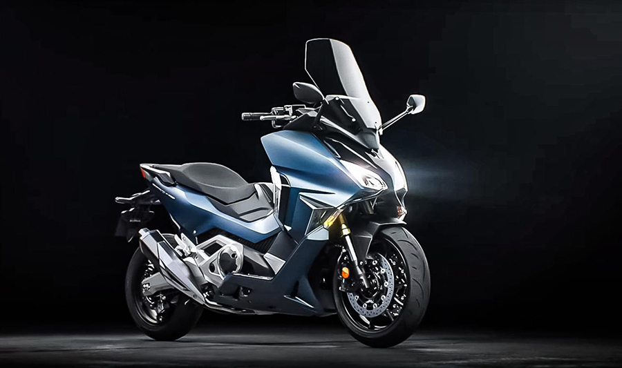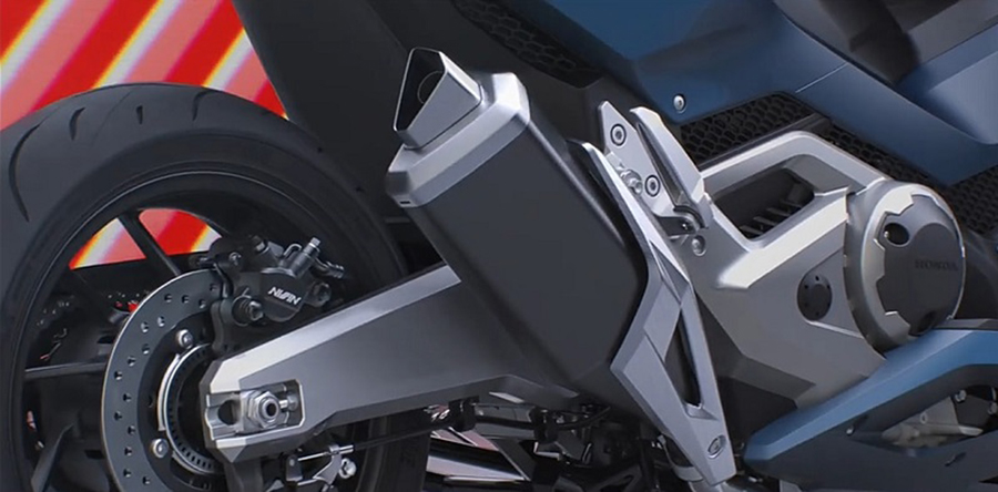 จากภาพจะเห็นรายละเอียดของตัวรถพอสมควร ภาพรวมเสมือนการผสมผสานระหว่างฟอร์ซ่ากับอินเทกรา ความแตกต่างคือด้านท้ายเหมือนกับบิ๊กไบค์ทั่วไป เหมือนอย่างอินเทกรา ทำให้การเหยียดขาค่อนข้างมาก ด้านหน้าก็คล้ายสกู๊ตเตอร์ยอดนิยมอย่างฟอร์ซ่าการออกแบบได้ฟอร์ซ่า 350 ใหม่ที่เพิ่งเปิดตัวไปเป็นร่างในหลายจุด โดยเฉพาะชิลด์กับไฟหน้าที่สะท้อนความเป็นฟอร์ซ่าชัดเจน ไฟเสริมที่ฝังอยู่ในแฟริ่งด้านหน้า โช๊คหน้าแบบหัวกลับ.jpg)
