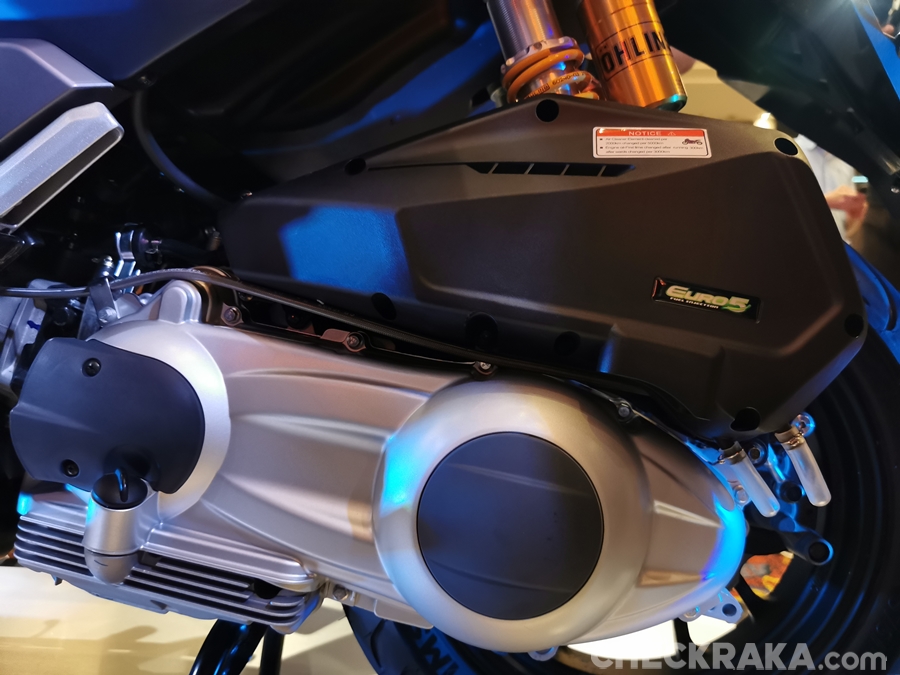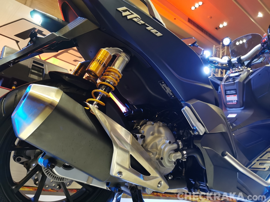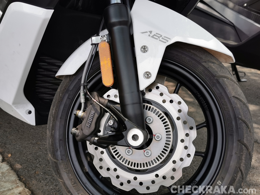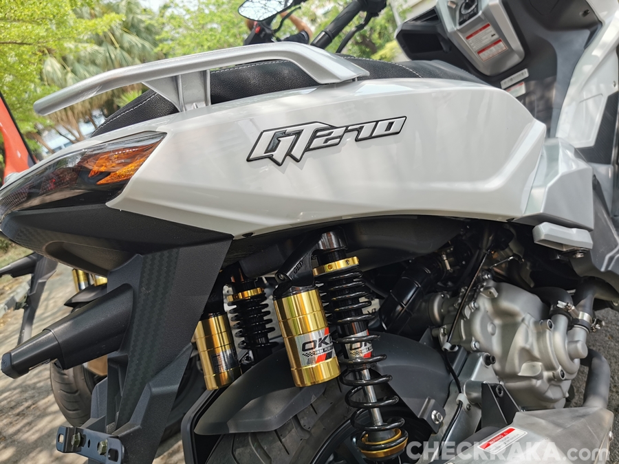 GT270 ปลอดภัยด้วยระบบเบรก ABS หน้า-หลัง ใช้จานดิสก์หน้าขนาด 240 มม. และหลังขนาด 220 มม. พร้อมอัพเกรดระบบกันสะเทือนด้านหลังด้วยโช้คหลังคู่ OKD แบบ Sub Tank Nitrogen Gas สำหรับรุ่น GT270 Extreme ใช้โช้ค OHLINS ยางทูปเลส IRC หน้า 110/70 - 13 หลัง 130/70 - 13