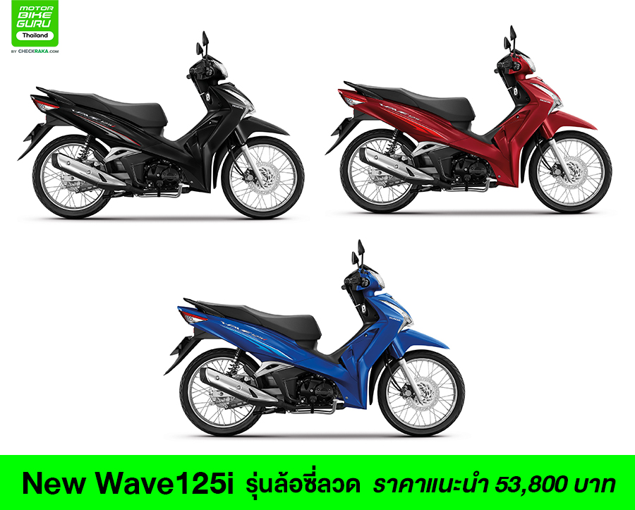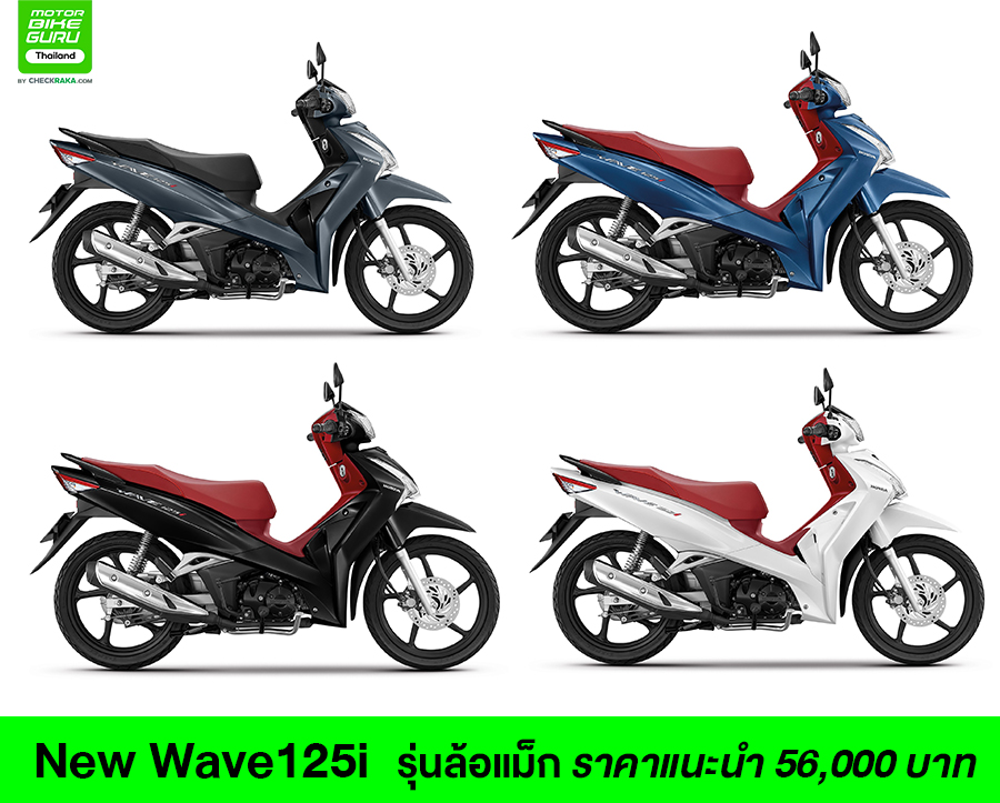 ฮอนด้า พร้อมวางจำหน่าย New Wave125i สีเทาใหม่ Metallic Matte Gray พร้อมกับอีก 3 เฉดสีเดิมที่เพิ่มความโดดเด่นด้วยสีสันแบบสปอร์ตทูโทน ในรุ่นล้อแม็ก ได้แก่ สีน้ำเงิน-แดง, สีดำ-แดง และสีขาวแดง ราคาแนะนำ 56,000 บาท และในรุ่นล้อซี่ลวด สีดำ, สีแดง-ดำ และสีน้ำเงิน-ดำ ราคาแนะนำ 53,800 บาท ตั้งแต่วันนี้เป็นต้นไป ที่ศูนย์ Honda Wing Center ทั่วประเทศ