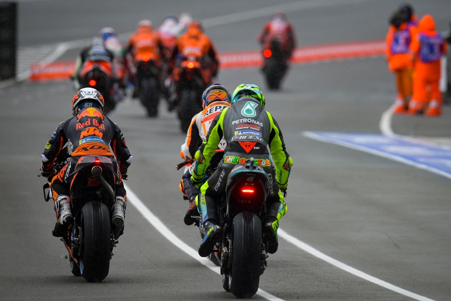 ม่า และน่าประหลาดใจโดย Miller สามารถทำได้สำเร็จ ก่อนที่ไฟสตาร์ทจะดับลง Quartararo นั้นได้สตาร์ทจากตำแหน่งโพล ก่อนรอบวอร์มอัพภายในสนามได้มีการประกาศเป็น Dry Race ทันทีที่ออกสตาร์ทก็เป็น Miller ที่ออกตัวได้ดีกว่า ตามมาด้วย Maverick Vinales จาก Monster Energy Yamaha MotoGP และ Quartararo แต่ว่ายังไม่ทันครอบรอบสนาม Franco Morbidelli จาก Petronas Yamaha SRT ก็ออกไปนอกแทร็กล้มลงแต่สามารถนำรถกลับเข้าร่วมการแข่งขันได้ ในขณะที่ Marc Marquez จาก Repsol Honda Team ที่ออกสตาร์ทจากอันดับที่ 6 ก็สามารถขยับมาอยู่ในอันดับที่ 4 ได้ แต่ในรอบที่ 2 Vinales ก็สามารถแซง Miller ขึ้นมาเป็นผู้นำได้ ทำให้อันดับกลายเป็น Vinales, Miller และ Quartararo ตามลำดับ ด้าน Marquez ก็โดน Takaaki Nakagami จาก LCR Honda IDEMITSU และ Alex Rins จาก Team SUZUKI ECSTAR แซงขึ้นไปได้ทำให้ Marquez ตกไปอยู่ที่อันดับ 6 เหมือนเดิม รอบถัดมา Rins ก็แซง Nakagami ได้สำเร็จ