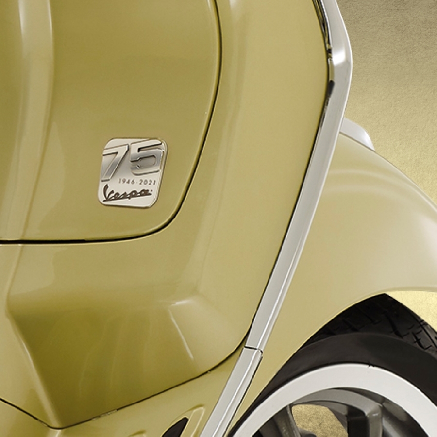 สีทอง Giallo 75th สีที่ถูกพัฒนาขึ้นมาเป็นพิเศษสำหรับรุ่นนี้ โดยสื่อถึงเฉดสีแบบร่วมสมัยที่ได้แรงบันดาลใจมาจากสีที่ได้รับความนิยมในยุค ‘40s และ สีทอง Giallo 75th ยังชวนให้รำลึกถึงความสำเร็จ จิตวิญญาณแห่งการสร้างนวัตกรรม และความหลงใหลในสไตล์แฟชั่นของเวสป้าพร้อมลายกราฟิกเลข 75 สัญลักษณ์แห่งการเฉลิมฉลองดีไซน์พิเศษเฉพาะรุ่น