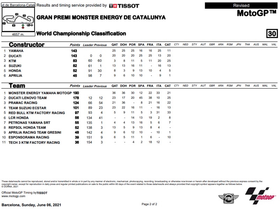 สำหรับการไล่ล่าแชมป์โลกในปี 2021 หลังจาก Oliveira และ KTM ทำผลงานได้อย่างโดดเด่นนั่นถือเป็นการขึ้นโพเดี้ยมสองในสองสำหรับ Oliveira ด้านคะแนนสะสม Zarco ลดช่องว่างห่างจากผู้นำอย่าง Quartararo อยู่เพียง 14 คะแนน ส่วนคะแนนสะสมประเภมผู้ผลิตนั้นตอนนี้ Yamaha กับ Ducati คะแนนเท่ากันที่ 143 คะแนน สนามต่อไปจัดการแข่งขันกันที่สนาม Sachsenring ในรายการ Liqui Moly Motorrad Grand Prix Deutschland