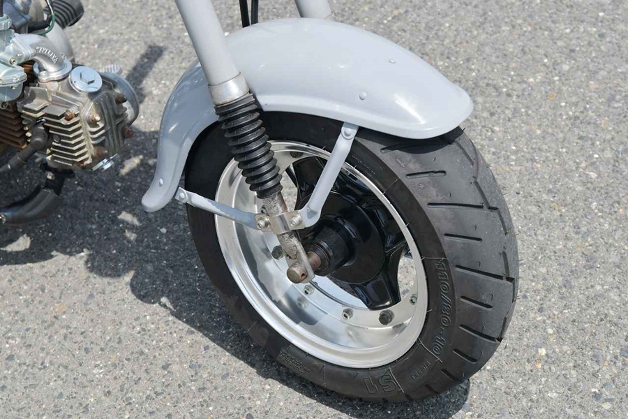 คันที่เห็นนี้ใช้พื้นฐานของรุ่น C50 ด้านหน้าแปลงใช้ของรุ่น DAX ล้อขนาด 10 นิ้ว เป็นล้อแต่งของ G Craft ด้วย ซึ่งเป็นการคัสตอมให้ต่างไปจากต้นฉบับทั่วไปของซูเปอร์คัพ การใช้พาร์ตของรุ่น DAX มาผสมผสานเกิดความลงตัวอย่างคาดไม่ถึง และไม่ต้องดัดแปลงอะไรมากมายอย่างการใช้ล้อหน้า-หลังก็มีแค่รองแหวนเพิ่มเข้ามาเท่านี้ก็ใส่ล้อแต่ง G Craft หน้ากว้าง 3.5J ของ DAX ได้แล้ว