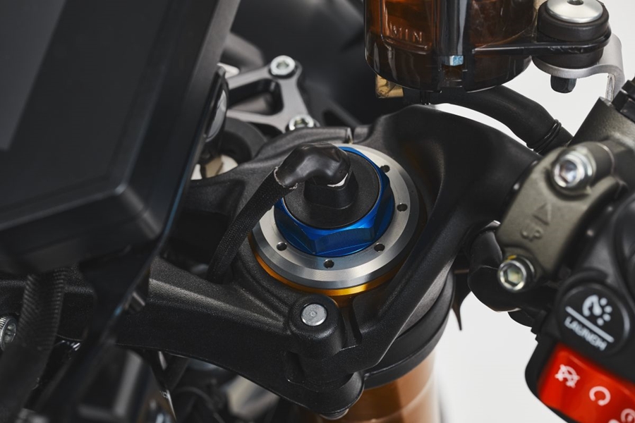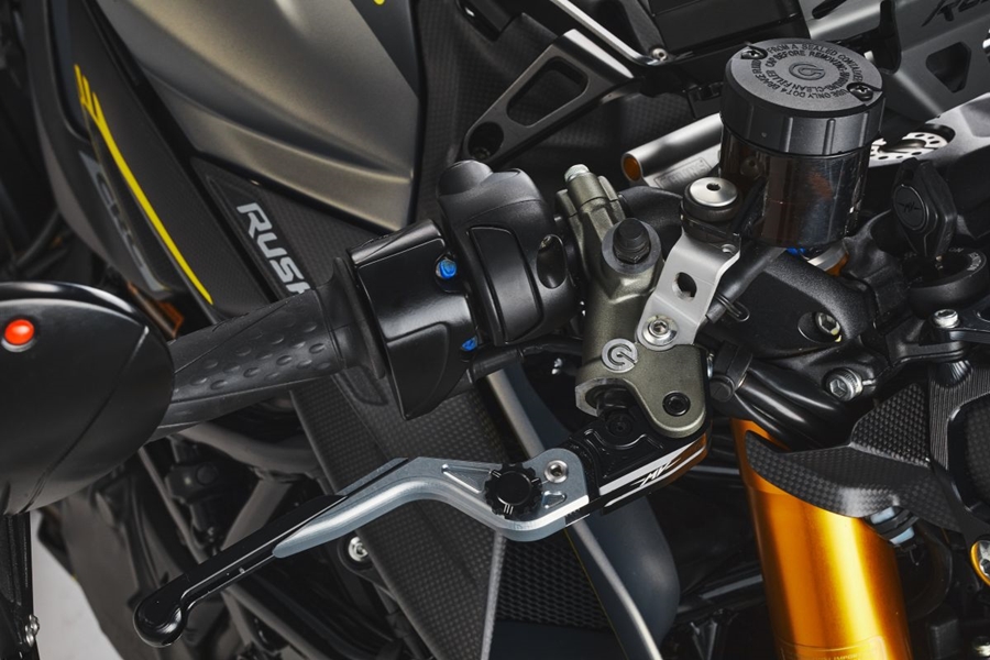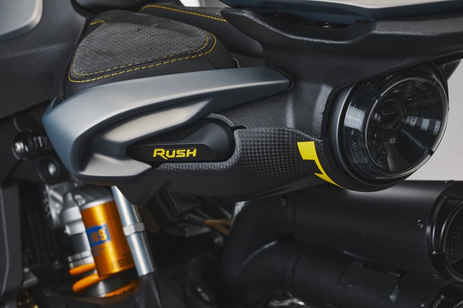 เกียร์ 6 สปีด คลัทช์ใหม่พร้อมเซ็นเซอร์ Quick Shifter ที่ทำให้เข้าเกียร์ง่ายแม่นนำขึ้น Rush 1000 มีน้ำหนัก 186 กก. บรรจุเชื้อเพลิงในถังขนาด 16 ลิตร มีระบบกันสะเทือน Ohlins หน้าเสริมด้วยโช้ค NIX EC 43 มม. พร้อมระบบกันสะเทือนแบบอิเล็กทรอนิกส์แบบปรับได้ ด้านหลังใช้โช้คเดี่ยว Ohlins EC TTX ปรับได้เช่นกัน.jpg)