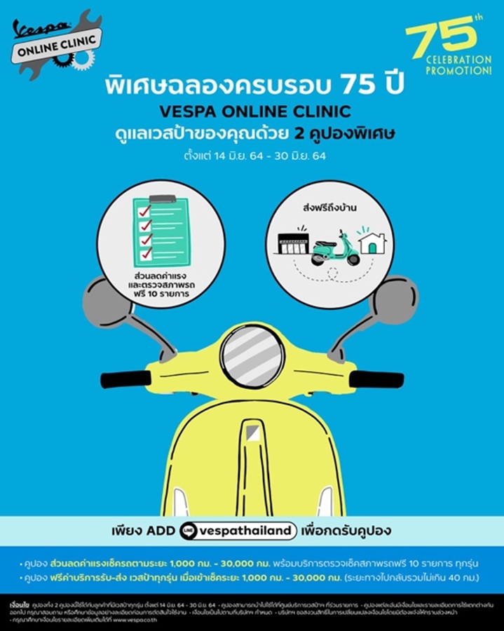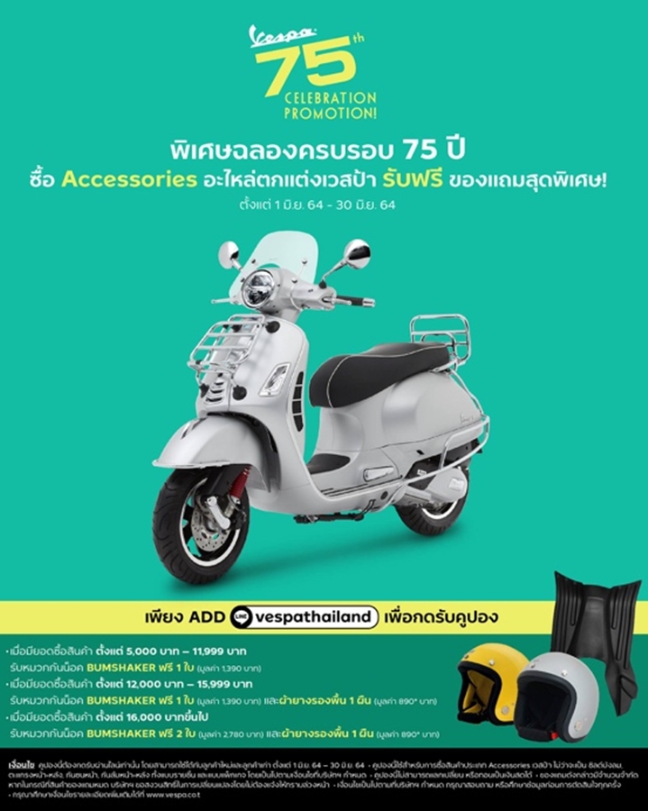 vespathailand และสามารถกดรับคูปองได้ที่ LINE Official @vespathailand