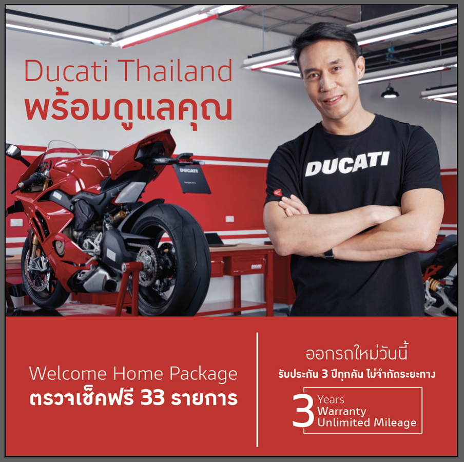 Ducati คือ แบรนด์ที่สร้างแรงบันดาลใจและชื่อเสียงระดับโลก ทุกรุ่นมีความโดดเด่นด้วยดีไซน์และสมรรถนะ แรงบันดาลใจของ Rider ทั่วโลกจากความสำเร็จบนสนามแข่งที่ดูคาติสามารถคว้าชัยชนะมาครอบครองนับครั้งไม่ถ้วน เทคโนโลยีทางวิศวกรรมชั้นสูงของดูคาติที่เกิดขึ้นตั้งแต่ปี 1926 จนถึงปัจจุบัน และกำลังจะครบรอบ 100 ปีในอีกไม่กี่ปี (2026) จากการเปิดตัวรถรุ่นใหม่ที่ได้เผยโฉมในระดับโลก ไม่ว่าจะเป็น Multistrada V4, Monster, Diavel 1260 Lamborghini, และ SuperSport 950 ผมมีความเชื่อมั่นว่าจะสร้างความตื่นเต้นให้กับแฟนดูคาติในประเทศไทยได้อย่างแน่นอน