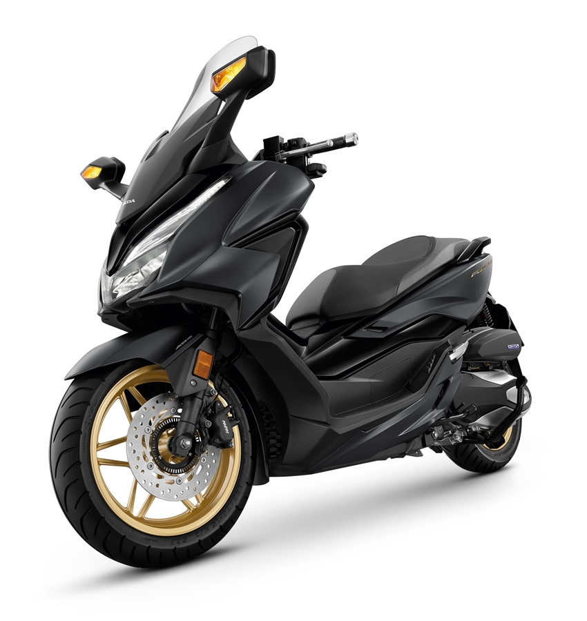 Forza350 เมื่อปีที่ผ่านมา บิ๊กสกู๊ตเตอร์รุ่นนี้ก็ได้กลายเป็นรถท็อปคลาส ที่ตอบโจทย์ได้ทุกด้านไม่ว่าจะเป็นเรื่องสมรรถนะจากเครื่องยนต์ eSP+ 4 วาล์ว ขนาด 330 ซีซี ทำงานร่วมกับกระเดื่องวาล์วแบบโรลเลอร์ยูนิแคม เพิ่มกำลังการขับเคลื่อน ลดแรงเสียดทาน ให้แรงส่งที่ต่อเนื่อง เร่งติดมือ เพิ่มเพลาบาลานเซอร์เพื่อสร้างสมดุลให้เพลาข้อเหวี่ยง หม้อกรองอากาศมีขนาดใหญ่ถึง 5.5 ลิตร เพิ่มประสิทธิภาพในการอัดอากาศเข้าสู่ห้องเครื่องยนต์ พร้อมหม้อน้ำที่ย้ายตำแหน่งมาอยู่ที่ด้านหน้ารถ ส่งผลให้การระบายความร้อนเป็นไปอย่างรวดเร็วยิ่งขึ้น และยังช่วยในการกระจายน้ำหนักมาทางด้านหน้าทำให้ควบคุมรถได้ง่ายขึ้น ตัวรถยังติดตั้งท่อไอเสียใหม่ที่คายไอเสียออกได้อย่างรวดเร็วยิ่งกว่าเดิม ช่วยรักษากำลังตั้งแต่ช่วงออกตัวจนถึงช่วงเร่งแซง