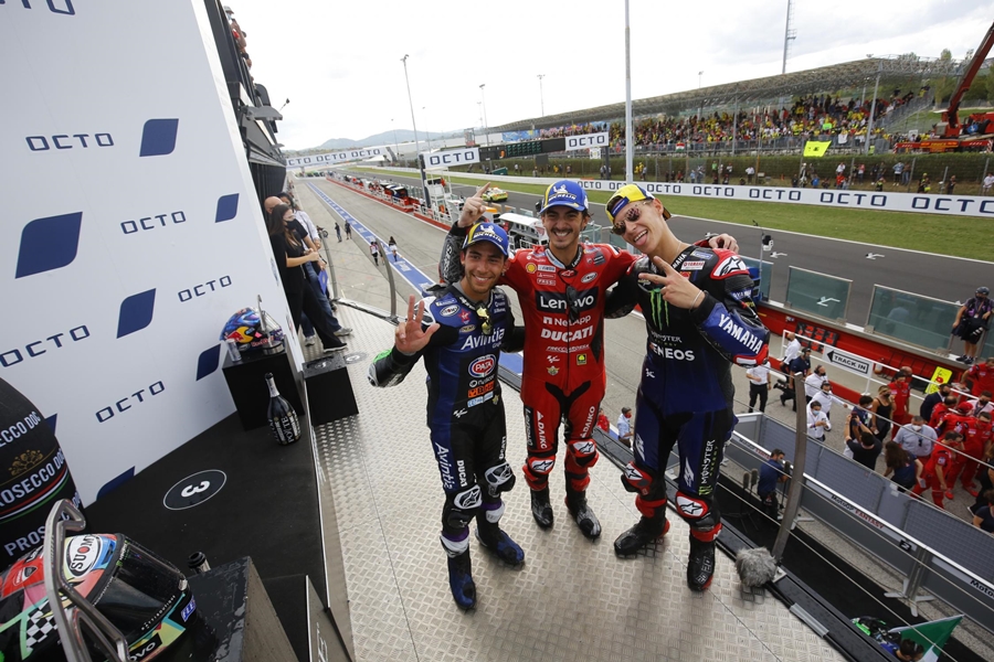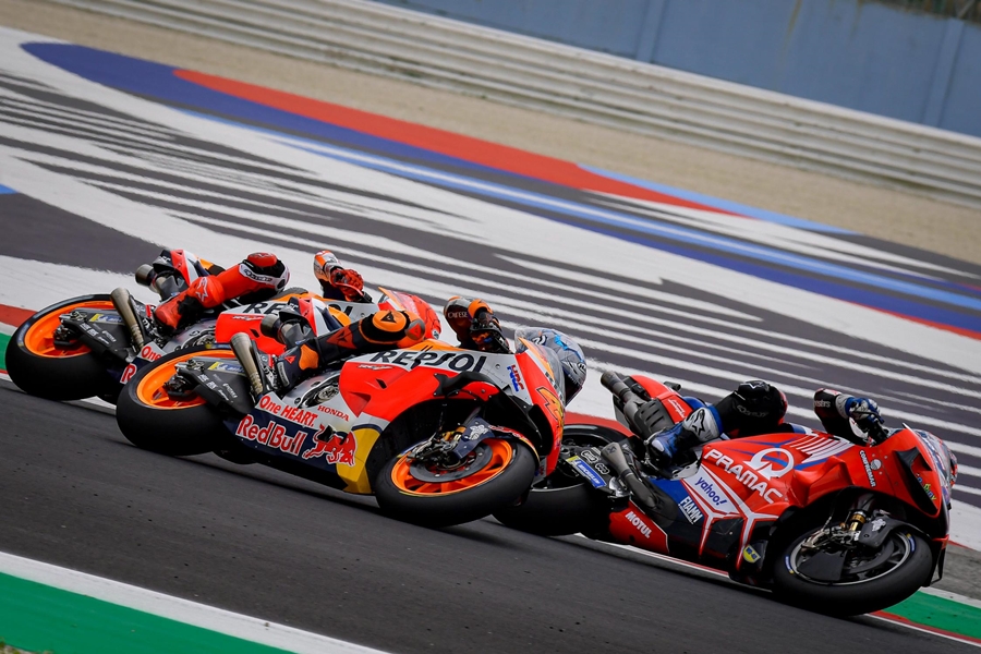 ในสนามนี้มีรถแข่งเข้าร่วมการแข่งขันมากถึง 24 คัน ทันทีที่ไฟสตาร์ทดับลง Bagnaia ชิงจังหวะขึ้นนำเพื่อนร่วมทีม Ducati Lenovo Team อย่าง Jack Miller ได้อย่างรวดเร็ว ส่วน Quartararo ตามมาเป็นอันดับที่ 3 โดย Bagnaia ทิ้ง Miller ห่างได้ถึงวินาทีครึ่ง ด้าน Quartararo ก็โดน Jorge Martin จาก Pramac Racing ไล่กดดดันจนถึงรอบที่ 3 Quartararo กับ Martin ก็ผลัดกันแซงไปมา Quartararo ก็พยายามสวนกลับในทันทีแต่สุดท้าย Martin ก็พลาดล้มหลุดแทร็กออกไป แต่ก็ยังสามารถนำรถกลับเข้าทำการแข่งขันต่อได้