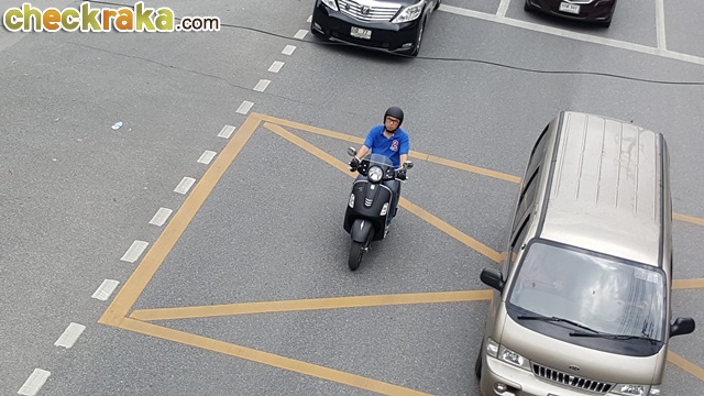 พื้นที่วางเท้าเหลือเฟือตามสไตล์เวสป้า และสะดวกกับกล่องเก็บของด้านหน้า แม้มีพื้นที่ไม่มาก