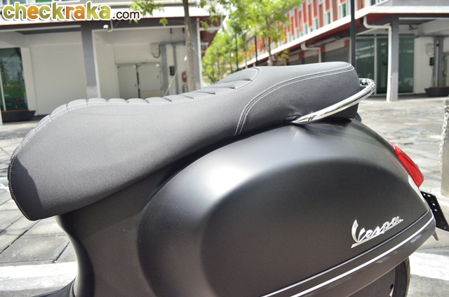 เวสป้า GTS ก็ให้ความเพลิดเพลินกับผู้เขียนไม่น้อย เบาะนั่งหุ้มด้วยหนังดีไซน์ใหม่รองรับผู้ขี่ได้หลากหลายขนาดตัว เพราะกว้างและเว้าลงให้ความมั่นคง ไม่ลื่นไหล แต่ส่วนด้านปลายเบาะอาจยาวพอไว้นั่งซ้อนได้ แต่เมื่อลองใช้งานจริงกลับไม่เหมาะ เพราะต้องคร่อมส่วนที่กว้างที่สุด ทำให้ยากต่อการวางขา และเวลาออกตัวเร็วๆ ผู้ซ้อนมักออกอาการหงายหลังง่ายกว่าทั่วไป