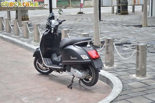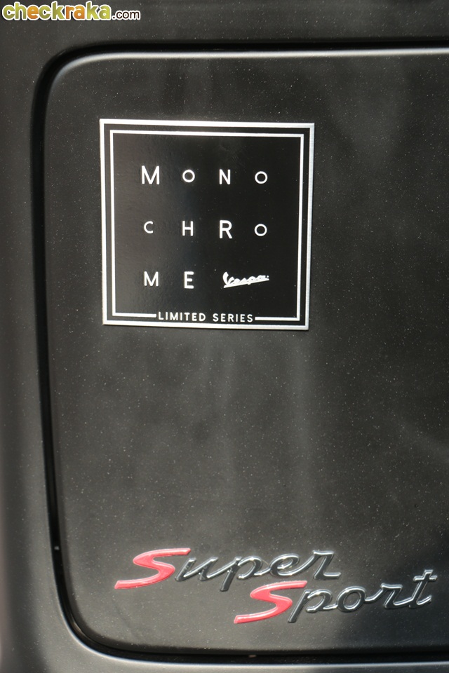 เมื่อมาคืนรถที่ Vespa Flagship Store ทำให้ผู้เขียนต้องใช้เวลากับการชื่นชมเวสป้าสวยๆ หลากหลายรุ่นอยู่นาน เวสป้า GTS รุ่นพิเศษโมโนโครม ลิมิเต็ด ซีรีย์ โดดเด่นด้วยสไตล์และดีไซน์เรียบหรูจากโทนสีดำด้านทั้งคัน โดยมีอุปกรณ์ชุดแต่งเสริมความโฉบเฉี่ยวให้อารมณ์สปอร์ต เช่น ชิลด์บังลมแบบสั้น-สีดำสโมค, โลโก้ Vespa สีดำหน้ารถ, เบาะหนังดีไซน์ใหม่ และเพลทเหล็กโลโก้ Monochrome Limited Series ทำพิเศษสำหรับรุ่นนี้