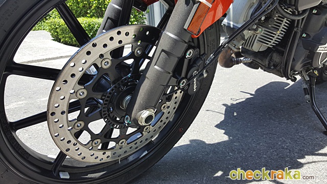 โช้กหน้า Showa 41 มม. โช้กหลังแบบเดี่ยว KAYABA เบรกหน้าขนาด 320 มม. Brembo คาลิเปอร์ 2 ลูกสูบ ABS เบรกหลังขนาด 245 มม. คาลิเปอร์เดี่ยว ABS ล้อแม็กด้านหน้า 18 นิ้ว ด้านหลัง 17 นิ้ว